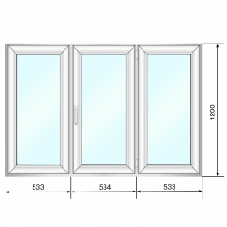 - Окно ПВХ 1600*1200, ЭксПроф Сиберика (Exprof Siberica) 70 мм, трехстворчатое, двухкамерный стеклопакет 32 мм «Теплое стекло»