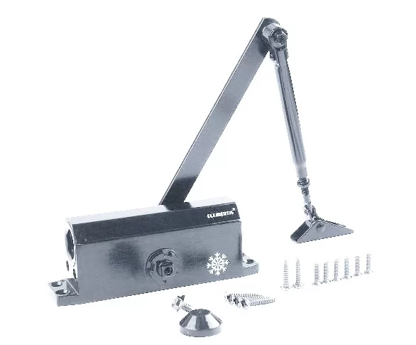 Доводчик в цвете «антрацит» для дверей весом до 80кг и шириной створки до 950 мм.