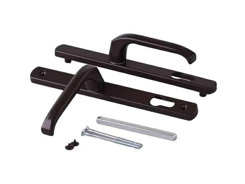 Нажимной гарнитур раздельный из алюминия. Ручка зафиксирована на накладке, крепление на двух стяжных винтах. Цвет — антрацит.