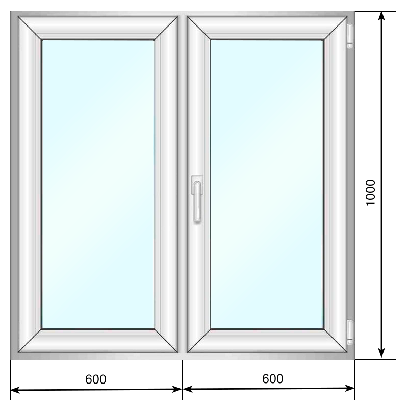 Окно ПВХ двухстворчатое створка п/о двухкамерное 1000*1000