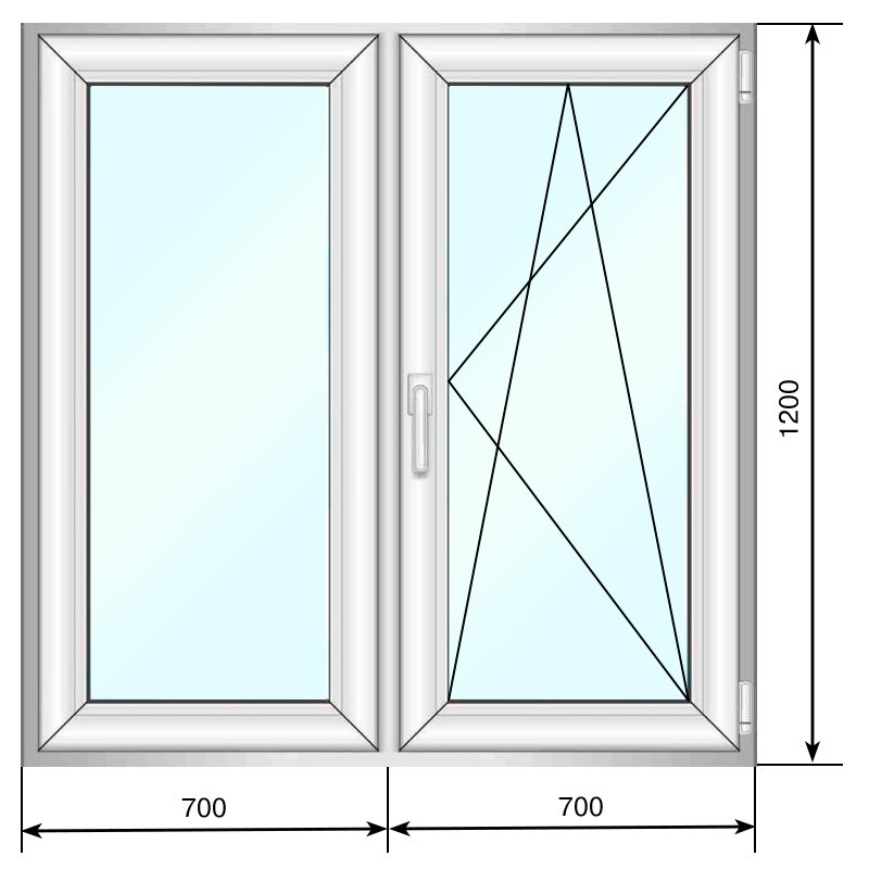 Окно ПВХ 1200*1000, поворотно-откидное, двухстворчатое, однокамерный стеклопакет