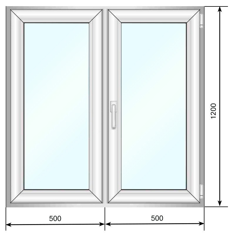 Окно ПВХ 1200*1000, поворотно-откидное, двухстворчатое, двухкамерный стеклопакет