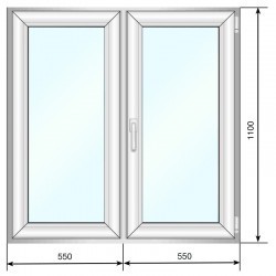 Окно ПВХ 1100*1100, поворотно-откидное, двухстворчатое, двухкамерный стеклопакет