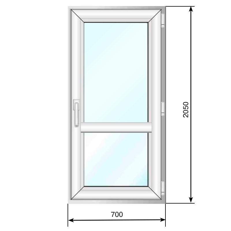 Дверь балк. 700*2050, поворотно-откидная, стеклпакет двухкамерный энергоэффиктивный, Rehau Blitz