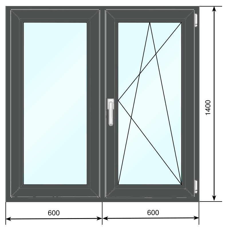 Антрацит,Окно ПВХ 1200*1400, поворотно-откидное, двухстворчатое, двухкамерный стеклопакет