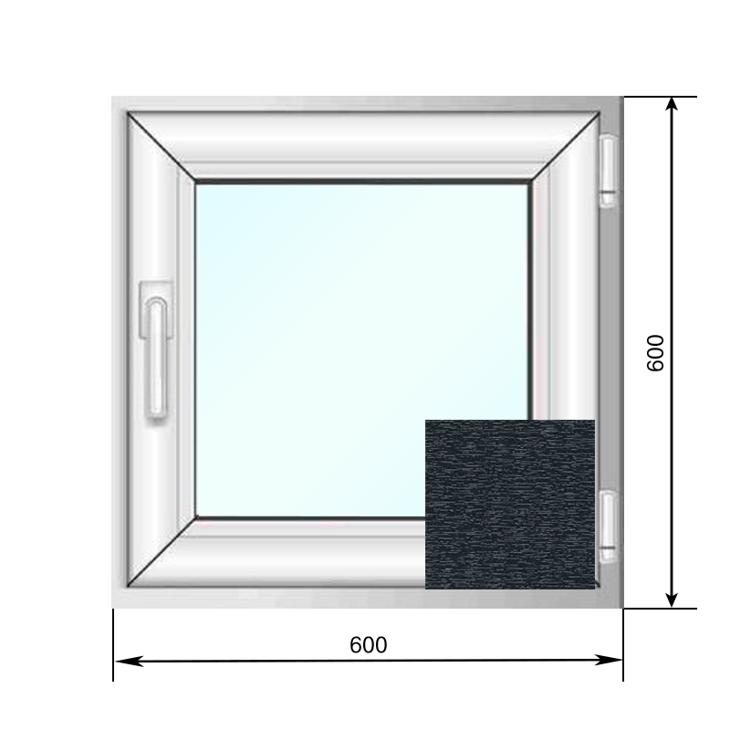 Окно ПВХ 600*600, поворотно-откидное, двухкамерный стеклопакет, ламинация "Антрацит"