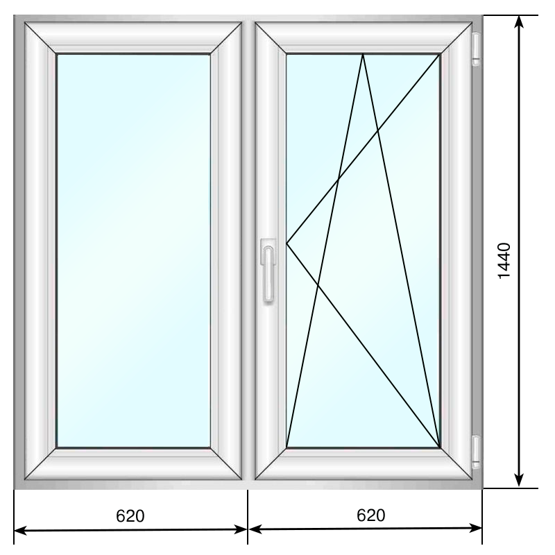 Окно ПВХ 1240*1440, двухстворчатое,поворотно-откидное, стеклопакет двухкамерный, МАСО