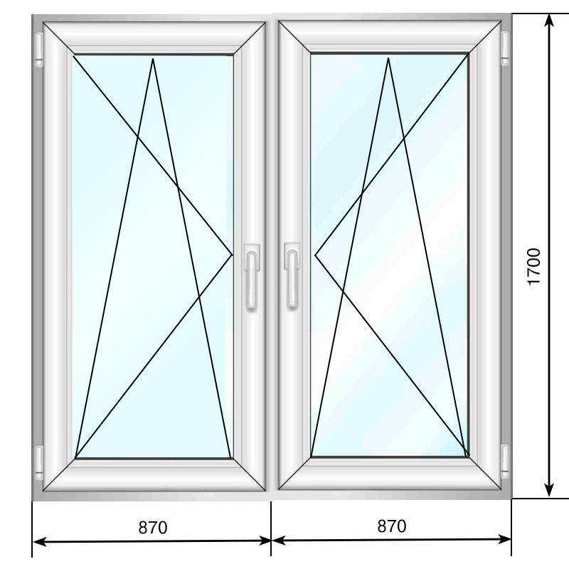 Окно ПВХ 1700*1780 мм, двустворчатое, двухкамерный стеклопакет